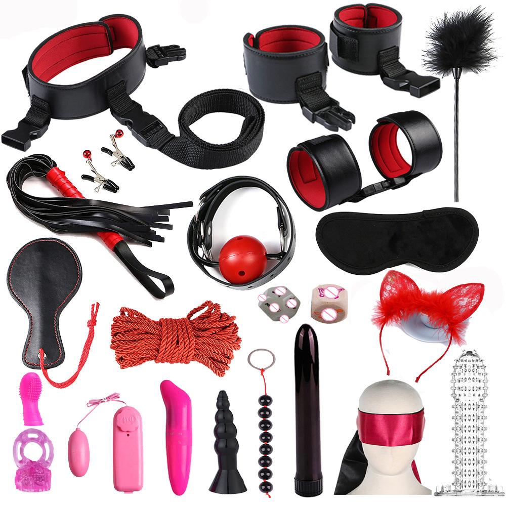 Wholesale 23 Pcs Set Toys Bondage Restraint Handcuffs Nipple Clamp Whip Collar Erotic Toy Couples Toys Kit For Couples