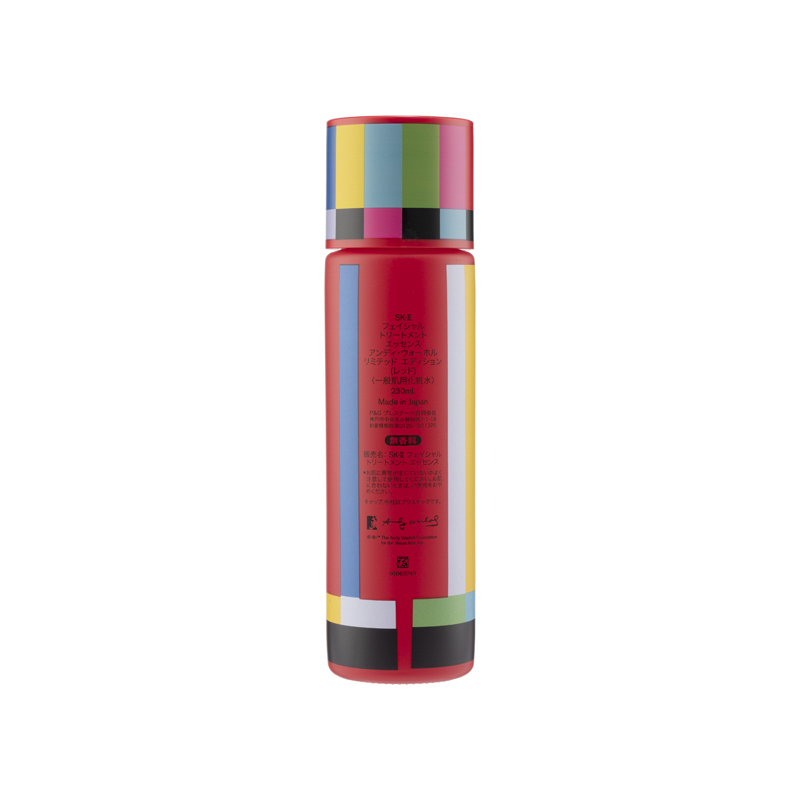 SK-II Pitera™ Essence Andy Warhol Limited Edition (#Red) (230ml) Crossover with the famous artist Andy Warhol, this limited edition of the signature essence water is in chic and unique packaging. Formulated with the signature Pitera™, skin would appear to be dewy, translucent and revitalized.Product Features:•Skin revitalizing: this essence water is rich in Pitera™ to maintain skin generation cycle, leaving skin balanced and resilient. It also helps to remove old dull skin cells for a silky and dewy texture.•Anti-aging: it replenishes skin with abundant moisture and nutrients, helping to blur wrinkles and fine lines, leaving skin radiant and youthful.•Lightweight texture: its watery texture penetrates skin fast to nourish and revitalize. It also boosts the effects for the subsequent skincare.Ingredients :•Pitera™: boosting skin circulation •Natural Moisturizing Factor: nourishing