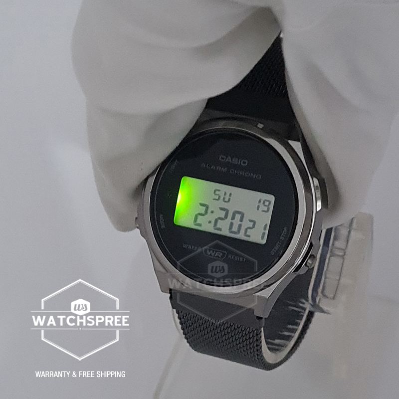 [Watchspree] Casio Vintage Style Digital Black Ion Plated Stainless Steel Mesh Band Watch A171WEMB-1A