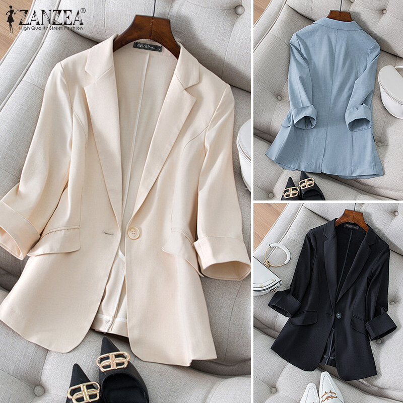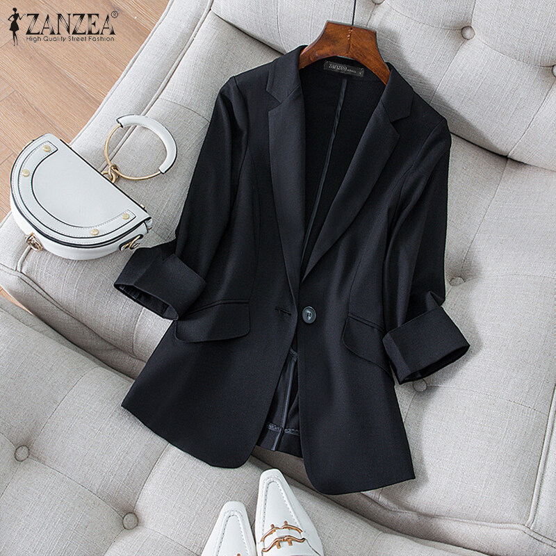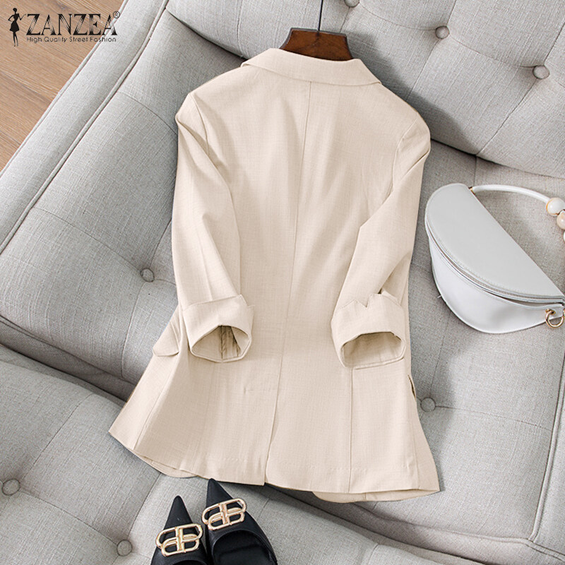 ZANZEA Women Commute Notch Collar 3/4 Sleeve Blazer Elegant Lady Office OL Suit Coat #2