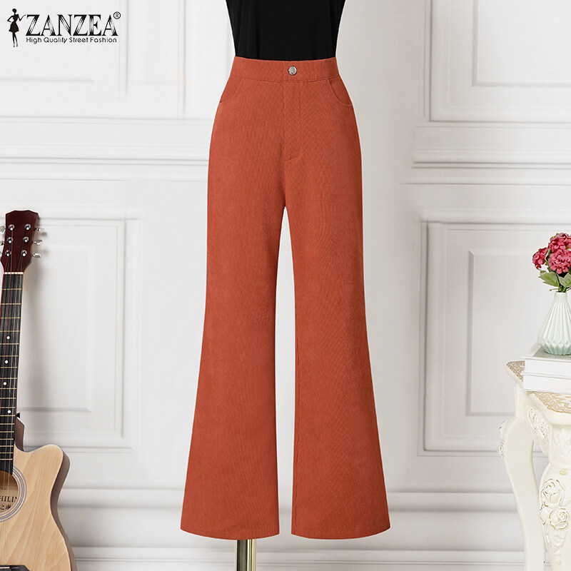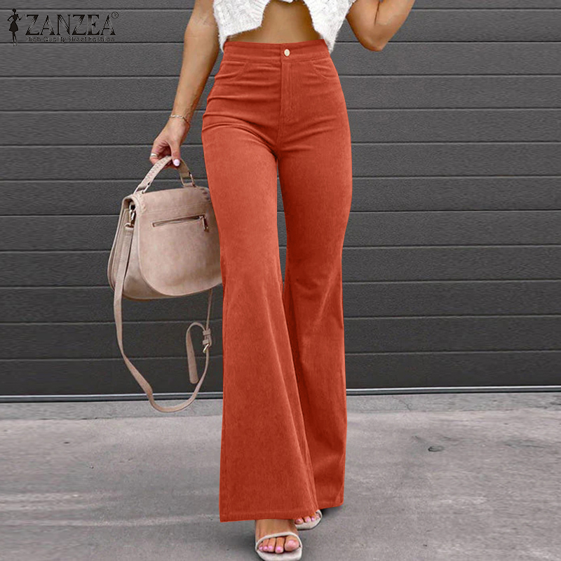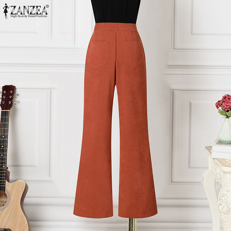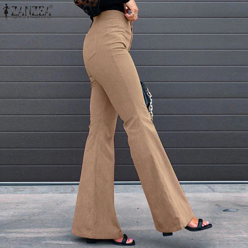 ZANZEA Women Formal Office Corduroy Flare Pants Business Leisure High Waist Solid Trousers #15