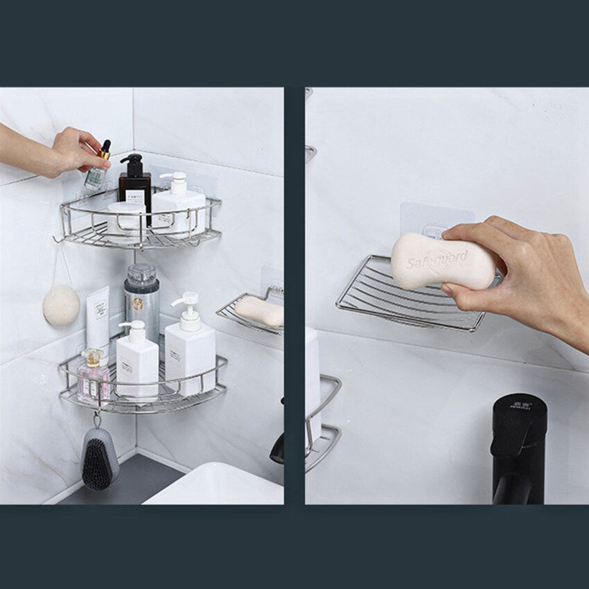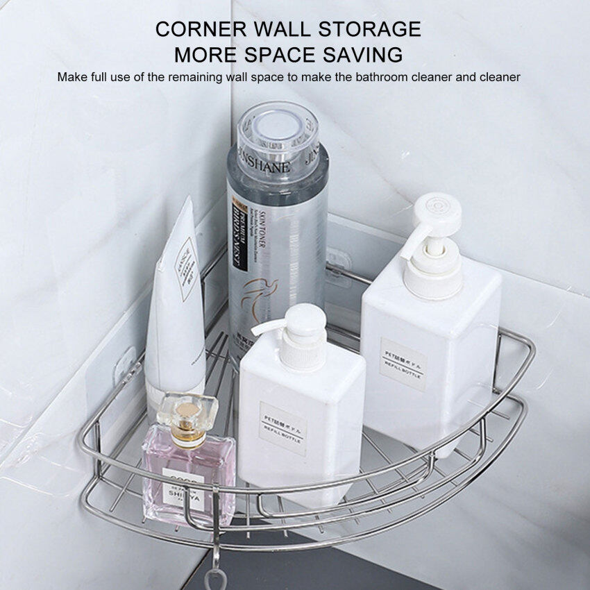Stainless Steel Bathroom Triangle shelving wall Perforation-free single layer corner shelf Kitchen Bathroom storage basket