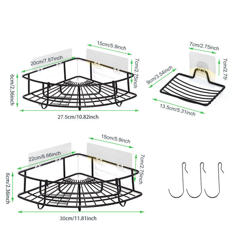 Package includes: 20+22cm shelf, 1 soap holder, 3 hooks