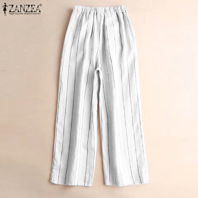 ZANZEA Women's Business Commute Stripe Printed Trousers OL Work Elastic Waist Wide Leg Pants #2